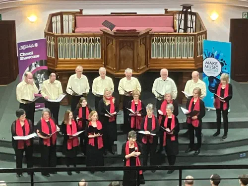 In 2024 the choir has sung in the Eisteddfod Choral Showcase, two weddings (one at St. Brelade’s Parish Church and the second at St Thomas’ Roman Catholic Church) and at an Advent concert for Kairos Arts with Cathy Sara, in addition to the events below.Thursday 24th October 2024: an Autumn concert was sung at St. Aubin’s Methodist Church. The programme is here.Sunday 17th November 2024: the choir sang in the Sacred Music Choir Class of The Jersey (Eisteddfod) Festival of the Performing Arts 2024